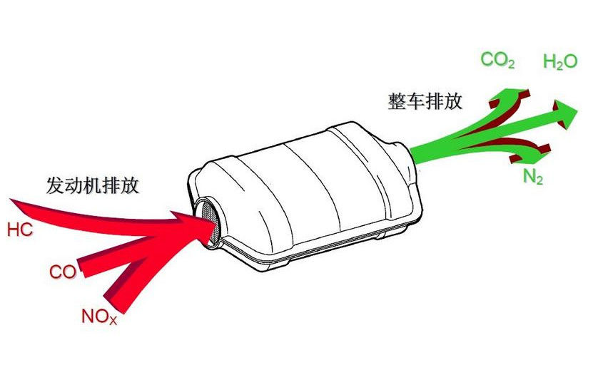 অভ্যন্তরীণ জ্বলন ইঞ্জিনের ত্রিমুখী রূপান্তরের জন্য উপযুক্ত একটি অনুঘটক রচনা, যেমন অটোমোবাইলের পেট্রল ইঞ্জিন,নিষ্কাশন গ্যাসের মধ্যে একটি ক্যারিয়ারের উপর দুটি পৃথক স্তরে সরানো একটি অনুঘটক উপাদান অন্তর্ভুক্ত রয়েছে.